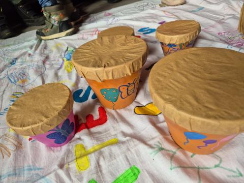 Am 1. März stand der Kindergottesdienst ganz im Zeichen des Weltgebetstages. Nach dem gewohnten Einstiegsritual schauten sich die Kinder daher verschiedene Bilder Nigerias an, das in diesem Jahr im Zentrum des Weltgebetstages steht. Und so erfuhren sie nicht nur, dass in Nigeria mit etwa 230 Millionen Einwohnerinnen und Einwohnern etwa dreimal so viele Menschen leben wie in Deutschland, sondern auch, dass man dort Tieren wie Krokodilen, Elefanten oder Giraffen auch außerhalb von Zoos begegnen kann. Zudem wurden im Rahmen der Kreativphase Trommeln aus Blumentöpfen, Backpapier und Kleister gestaltet und gefertigt.Der KiGo endete mit einem gemeinsamen Segenslied und dem Vater Unser.