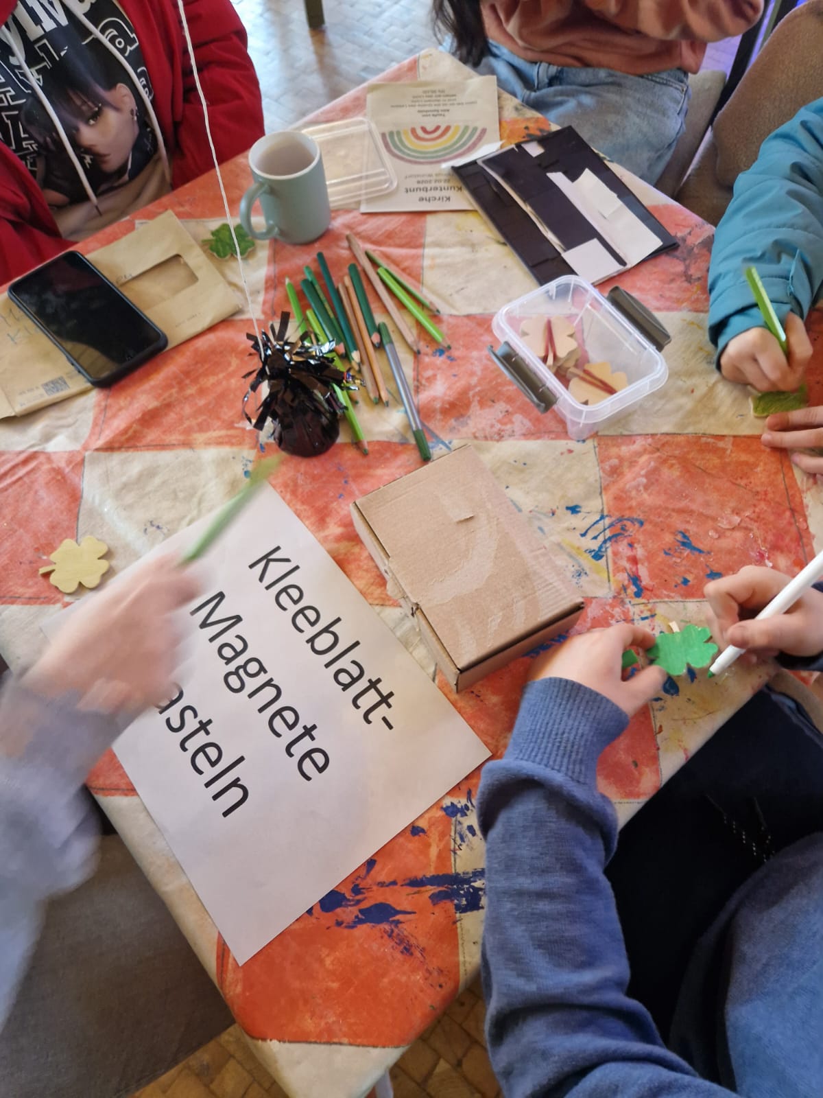 Unter diesem Motto stand der Familiengottesdienst am 22. Februar in Corvinus. Und so orientierten sich alle Stationen in der Kreativphase an einer der Farben des Regenbogens. Unter anderem konnten die zahlreichen großen und kleinen Besucherinnen und Besucher Magnet-Kleeblätter gestalten, einen Handabdruck ausschneiden und aufkleben, an einem Geräusche-Quiz teilnehmen oder ihr Geschick beim Dosenwerfen unter Beweis stellen.