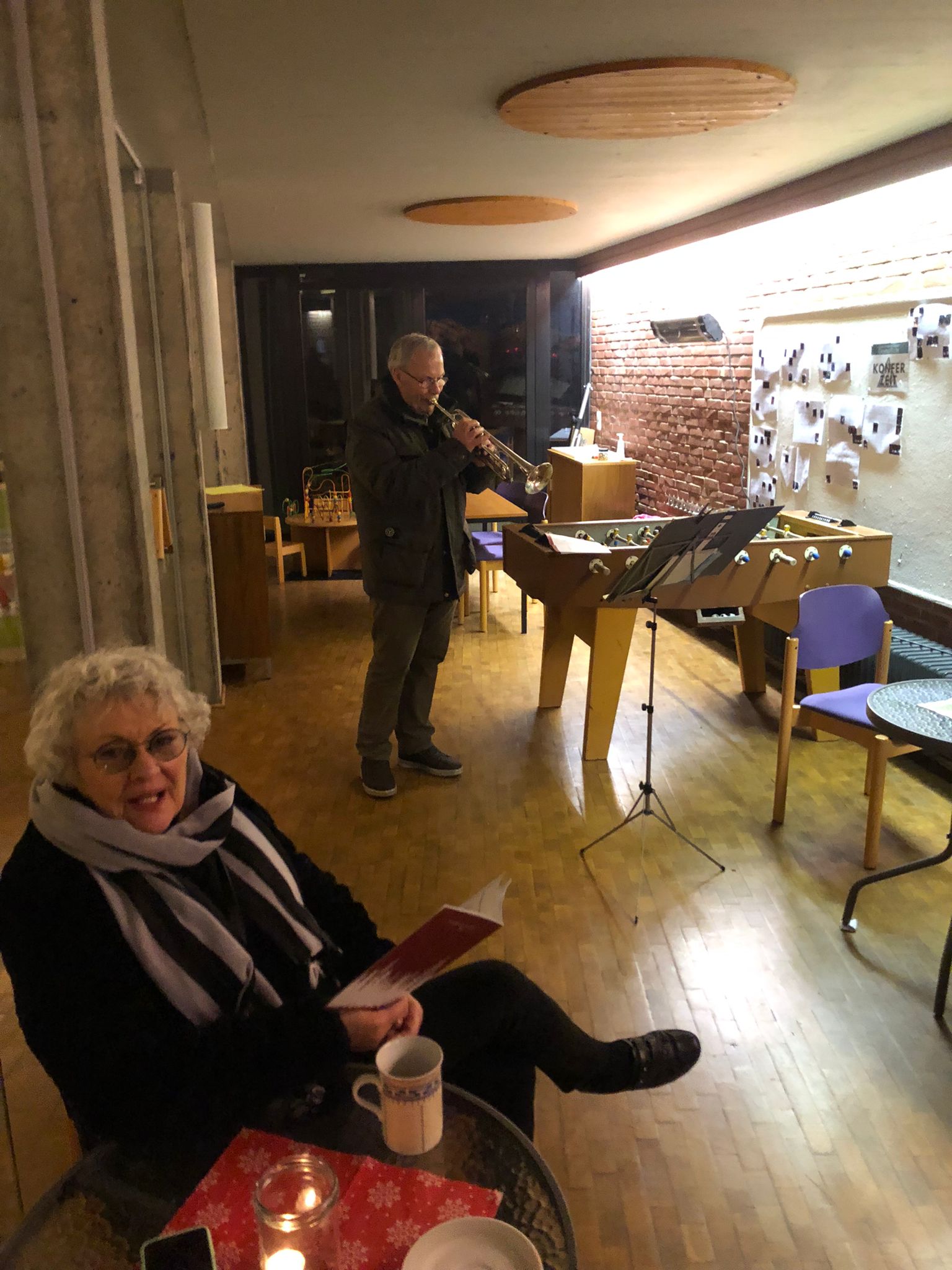 Neben warmen Getränken und leckeren Schmalzbroten wurde der Abend durch Claus Broecker musikalisch begleitet, zudem trug die Textschmiede weihnachtliche Textimpulse vor. Vielen Dank allen Helfenden für die Vorbereitung!