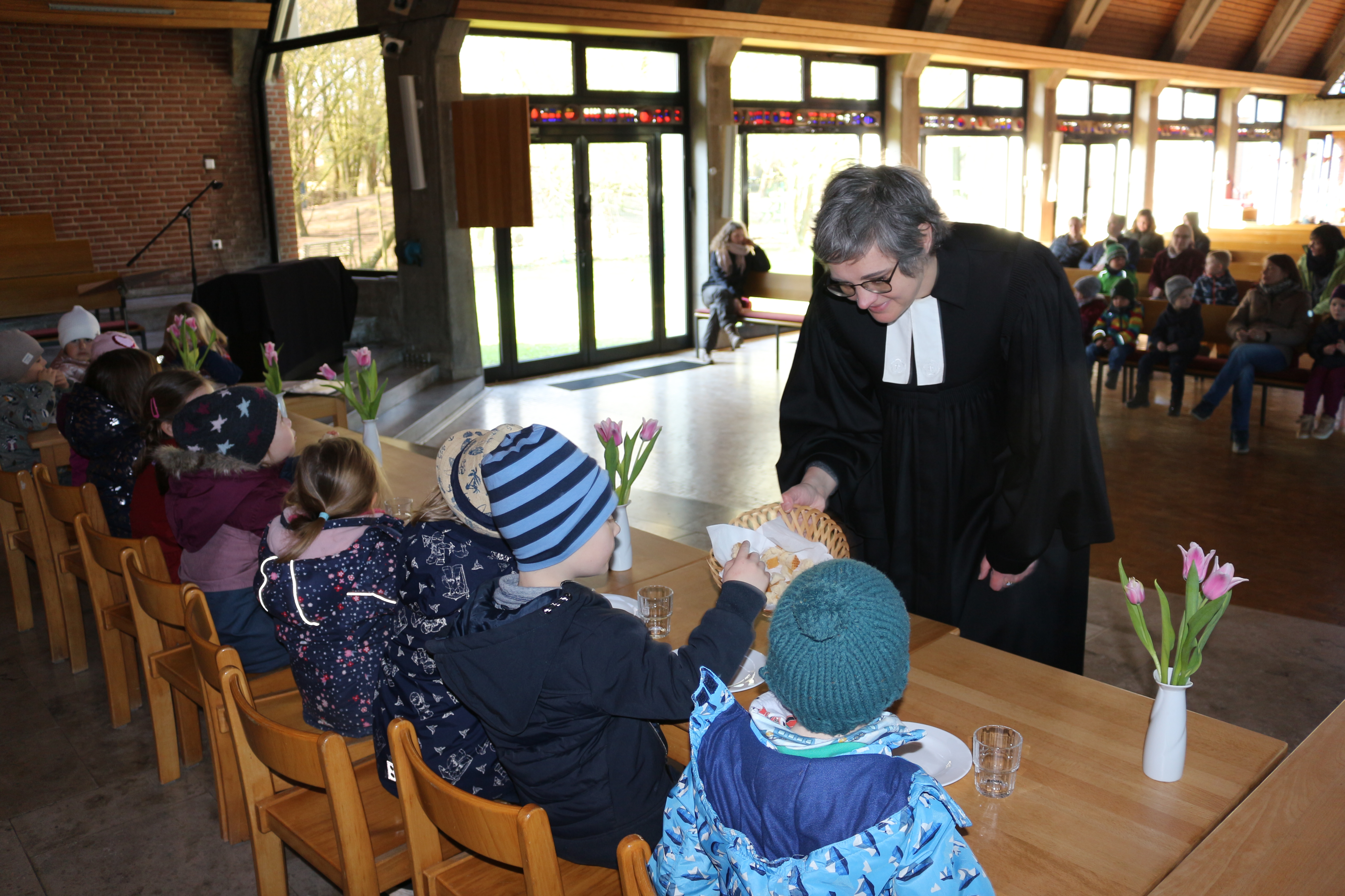 Am Gründonnerstag hat die Corvinus-KiTa gemeinsam mit Pastorin Franziska Oberheide sowie einigen Eltern und Familienangehörigen in der Corvinus Kirche eine Andacht gefeiert. Thematisch ging es um das letzte Abendmahl Jesu mit seinen Jüngern. Es wurde nicht nur über die Symbolik und Bedeutung des Abendmahls gesprochen, sondern auch gebetet und gesungen. Außerdem konnten sich einige Kinder an einen gedeckten Tisch setzen und selbst erleben, wie sich das letzte Abendmahl damals angefühlt haben könnte. Es war eine schöne Andacht. Vielen Dank an alle Mitwirkenden!