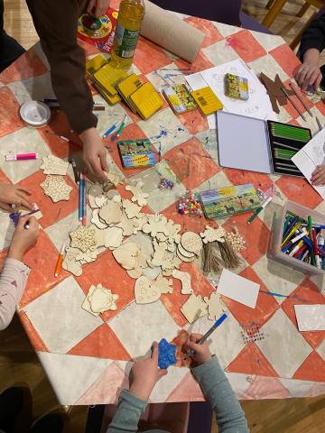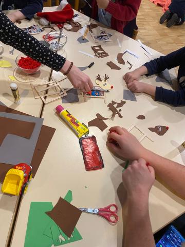 Am 05. Dezember wurde im Rahmen des diesjährigen Adventsbastelns fleißig gemalt, geschnitten und geklebt. Entstanden sind viele kleine Kunstwerke, wie zum Beispiel lustige Weihnachtskarten oder Rentiere. Zudem gab es frisch gebackene Waffeln und leckeren Punsch.