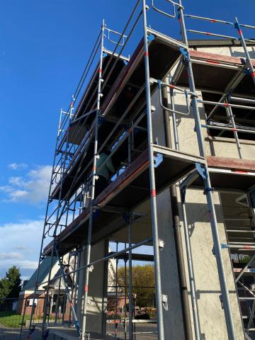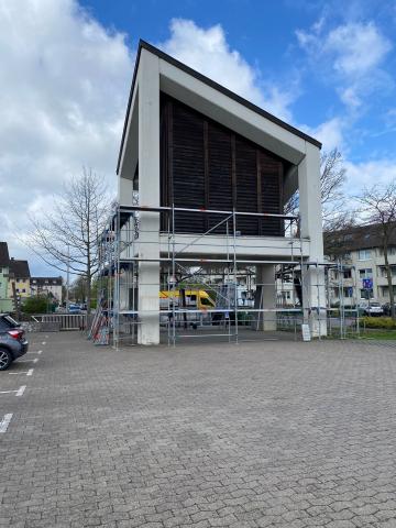 Seit Anfang der Woche werden die ersten Arbeiten zur Sanierung unseres Kirchturmes durchgeführt. Dazu wurde zunächst ein Gerüst um den Turm gebaut, um auch die höheren Bereiche erreichen zu können. Nun müssen zunächst letzte Efeu-Reste an verschiedenen Stellen des Turms entfernt werden, bevor ein neuer Anstrich erfolgt. Vielen Dank an alle Helfenden für die Unterstützung bei den Vorarbeiten sowie an alle Spenderinnen und Spender, die bereits die Maßnahme finanziell unterstützt haben. Ein wenig Geld fehlt noch, wir freuen uns nach wie vor über jede Spende, die der Sanierung des Kirchturms zu Gute kommt.