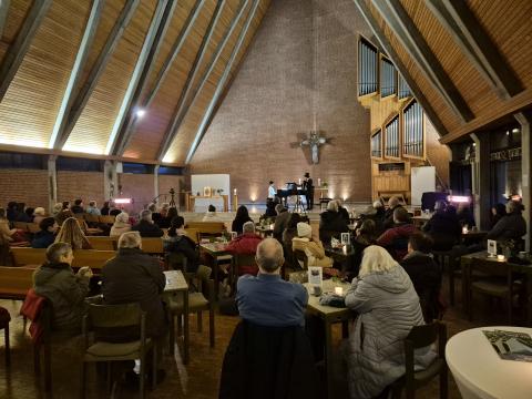 Am vergangenen Sonntag stand bei uns in der Kirche das erste Konzert des Jahres auf dem Programm. Unter dem Motto "Chopin meets Gershwin in HEAVEN" gab das "Duo Klazz" einen Einblick in sein vielfältiges Repertoire. Neben den musikalischen Fähigkeiten am Piano und der Klarinette begeisterte das Duo aber auch durch seine humorvollen Unterhaltungen zwischen den Stücken und schlüpfte in die Rollen der bekannten Komponisten Chopin und Gershwin, die sich nun im Himmel begegnen.