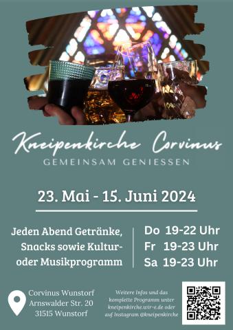 Bald ist es soweit: Vom 23. Mai bis zum 15. Juni wird Corvinus zur Kneipenkirche. Vier Wochen lang werden immer donnerstags, freitags und samstags Getränke, Snacks und ein wechselndes kulturelles und musikalisches Programm angeboten.