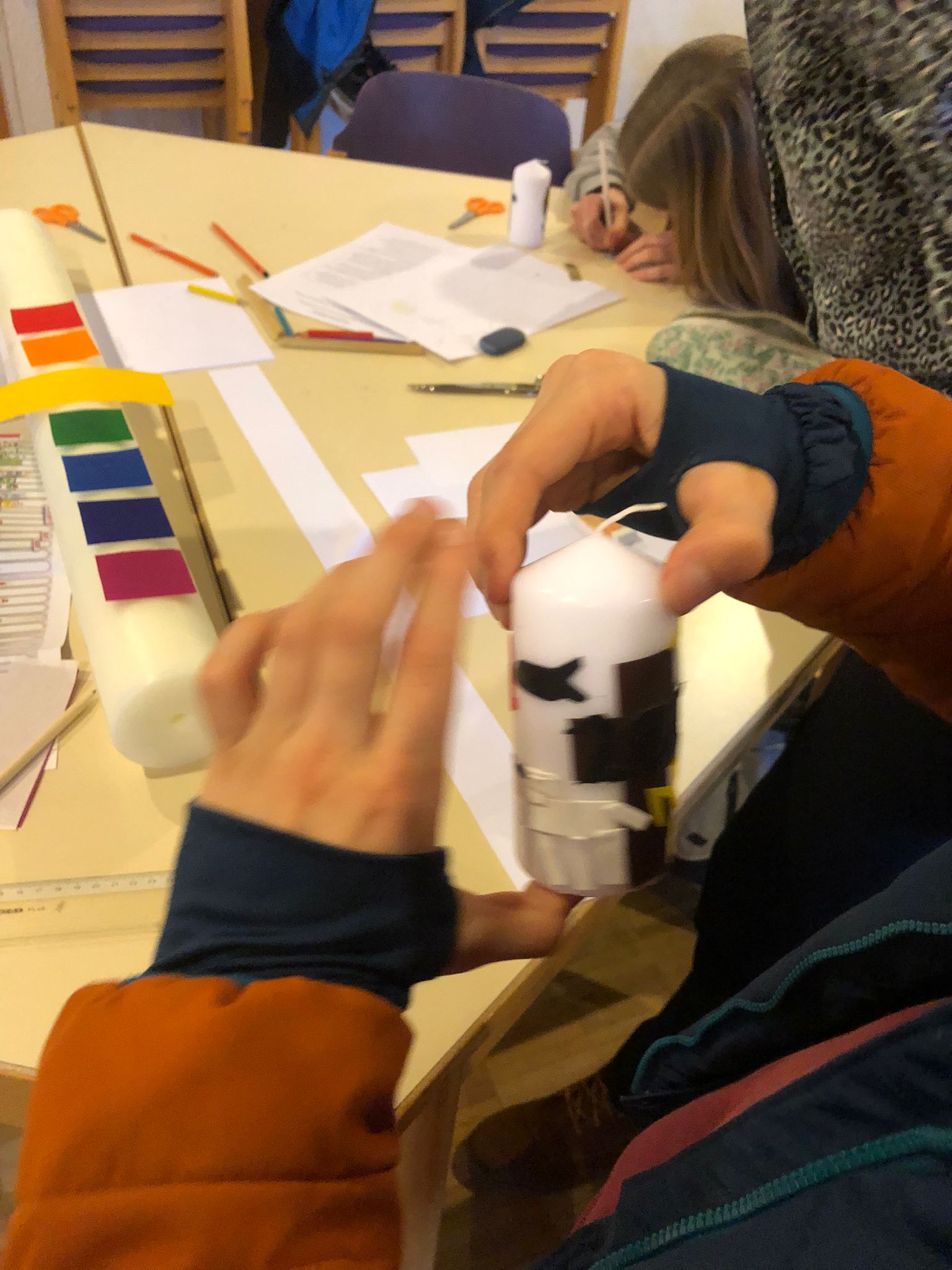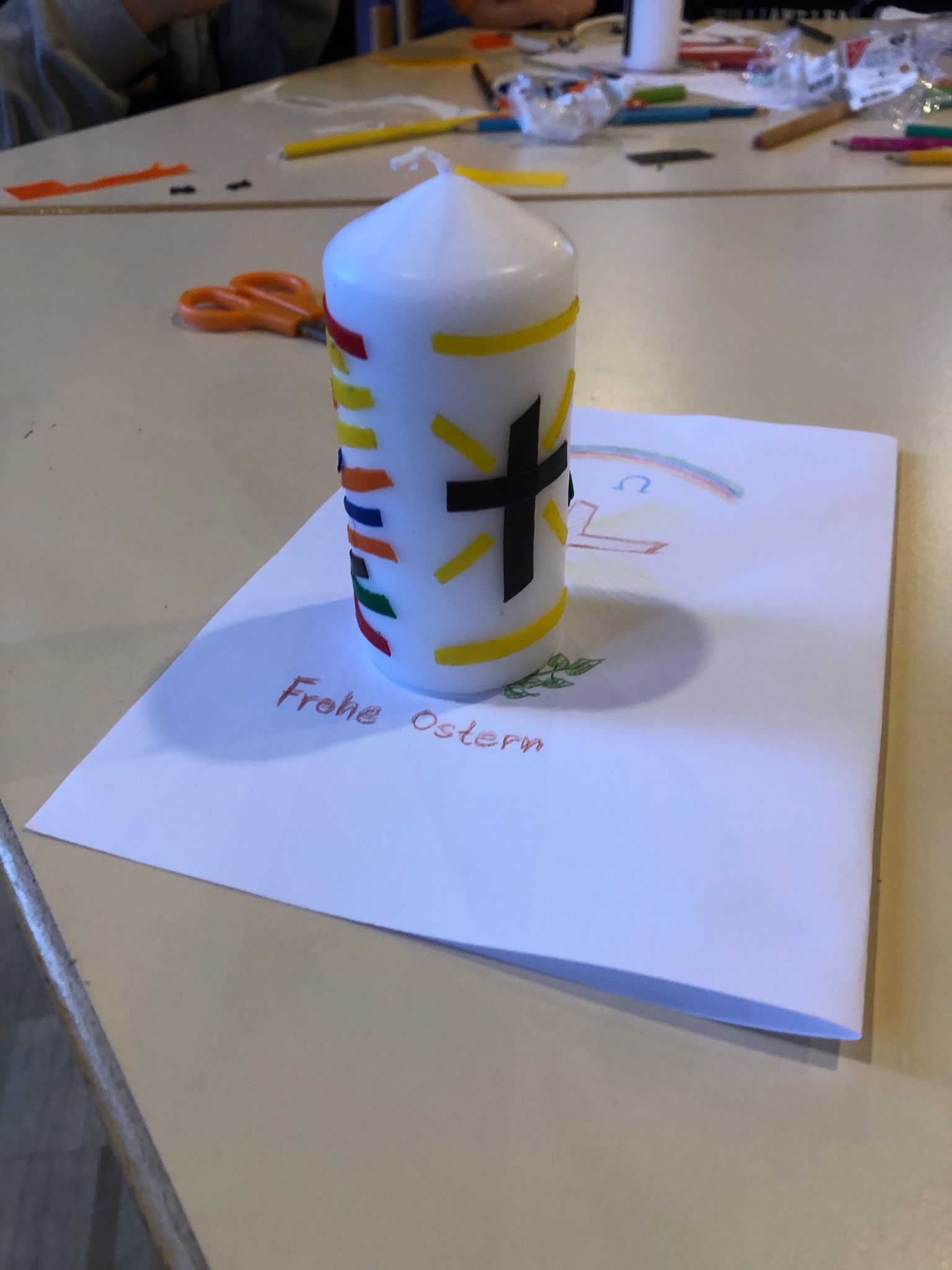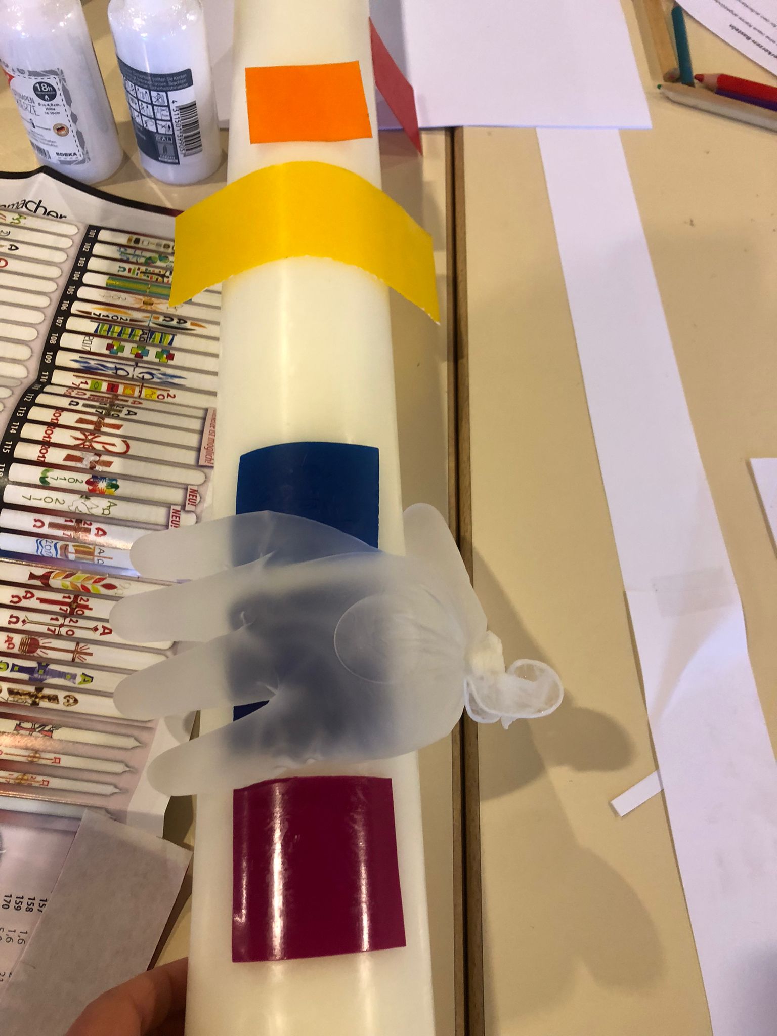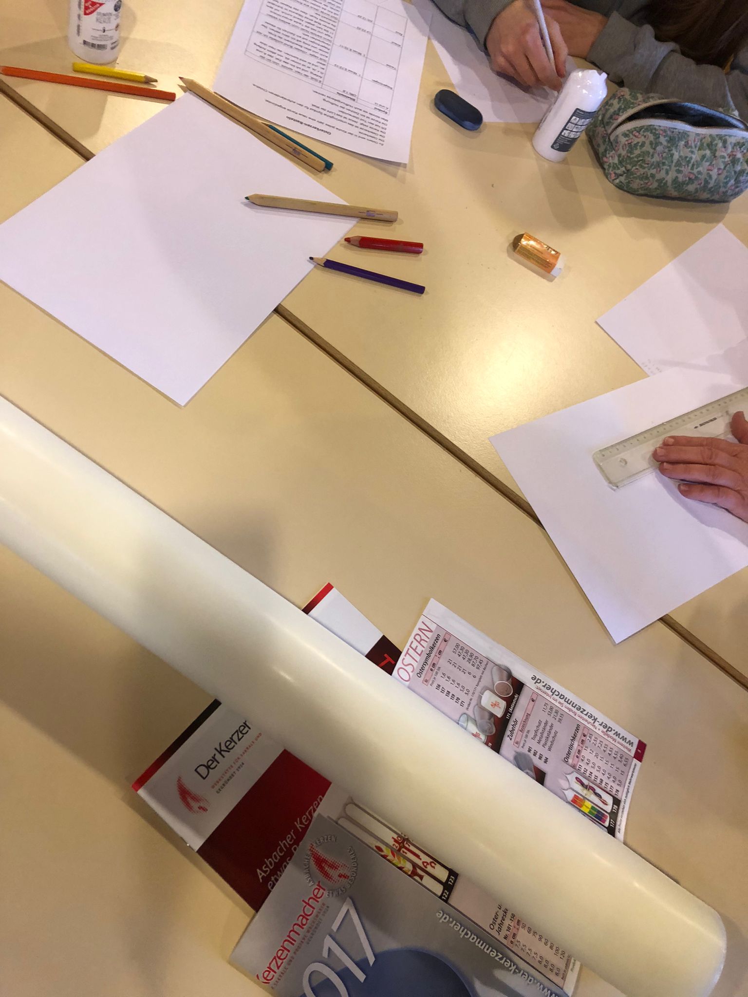 Gemeinsames Basteln der Osterkerze