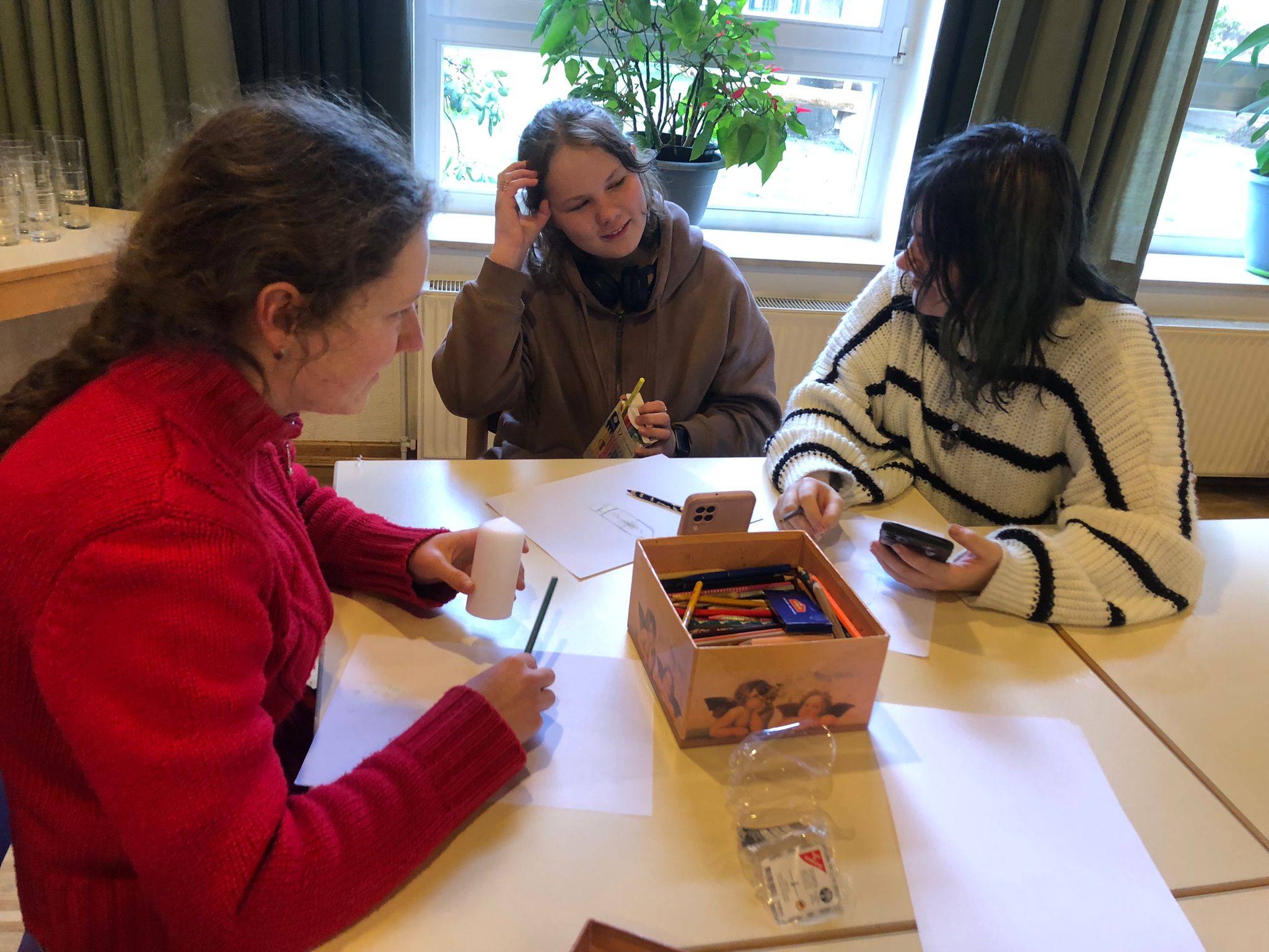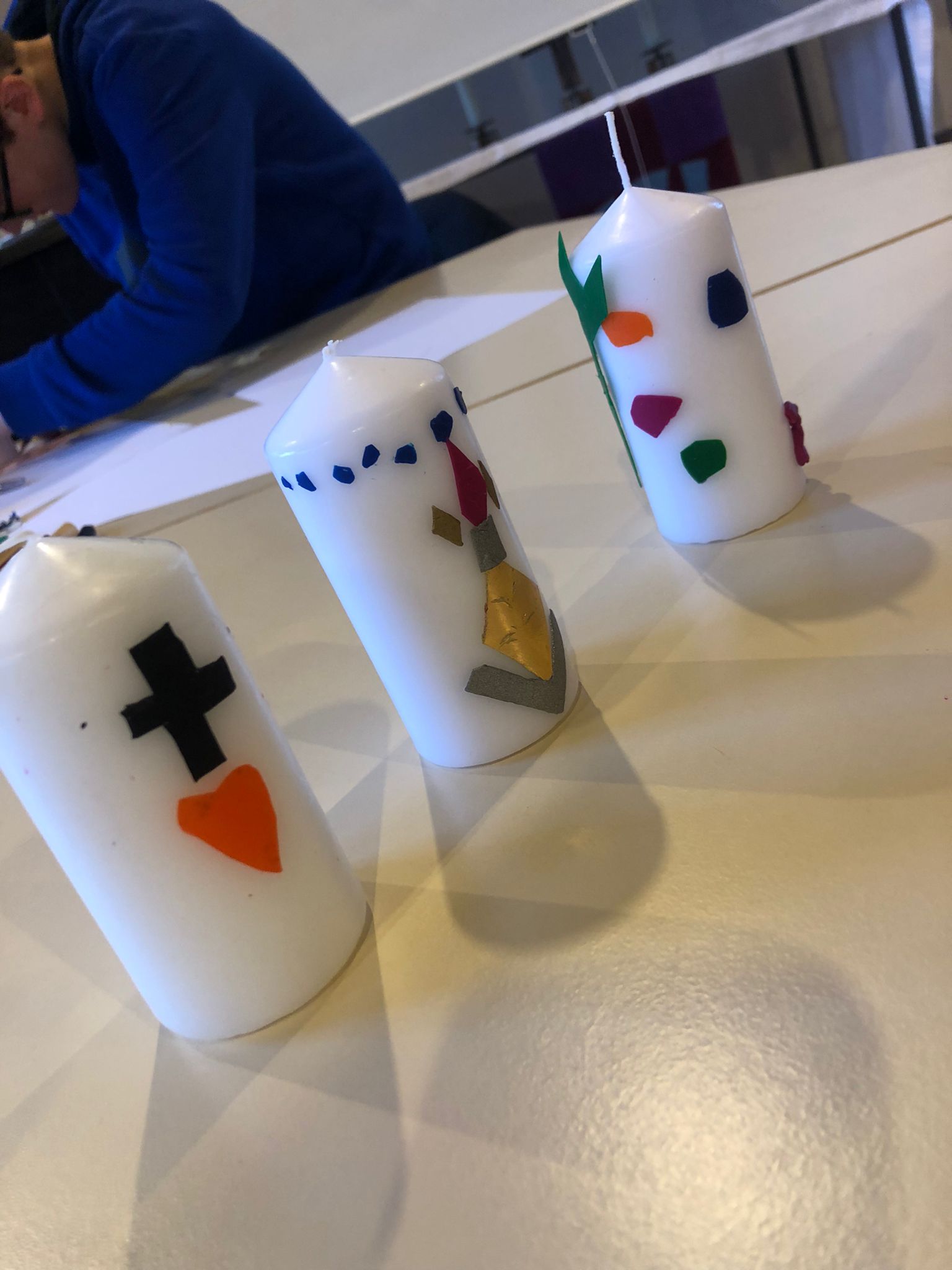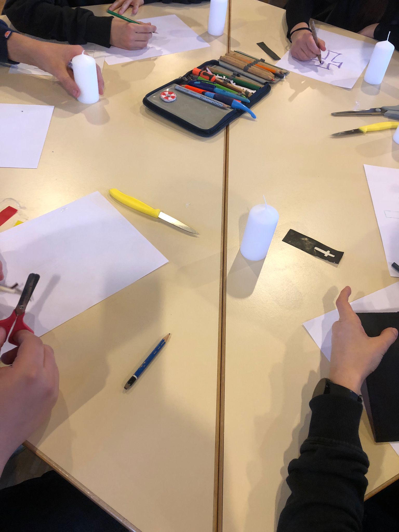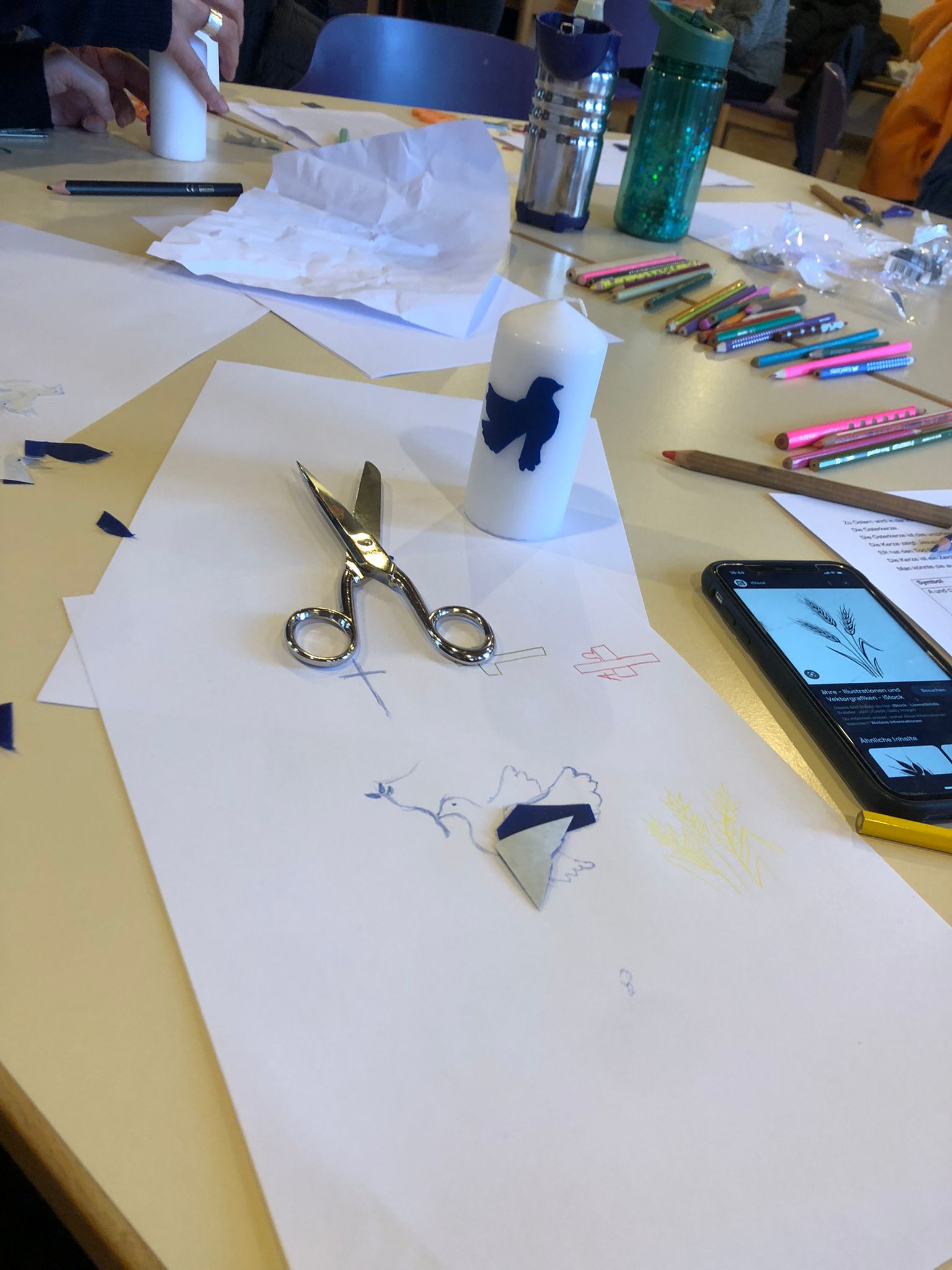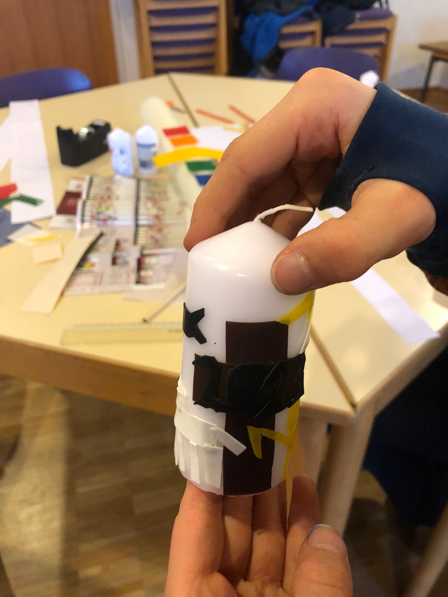 Gemeinsames Basteln der Osterkerze