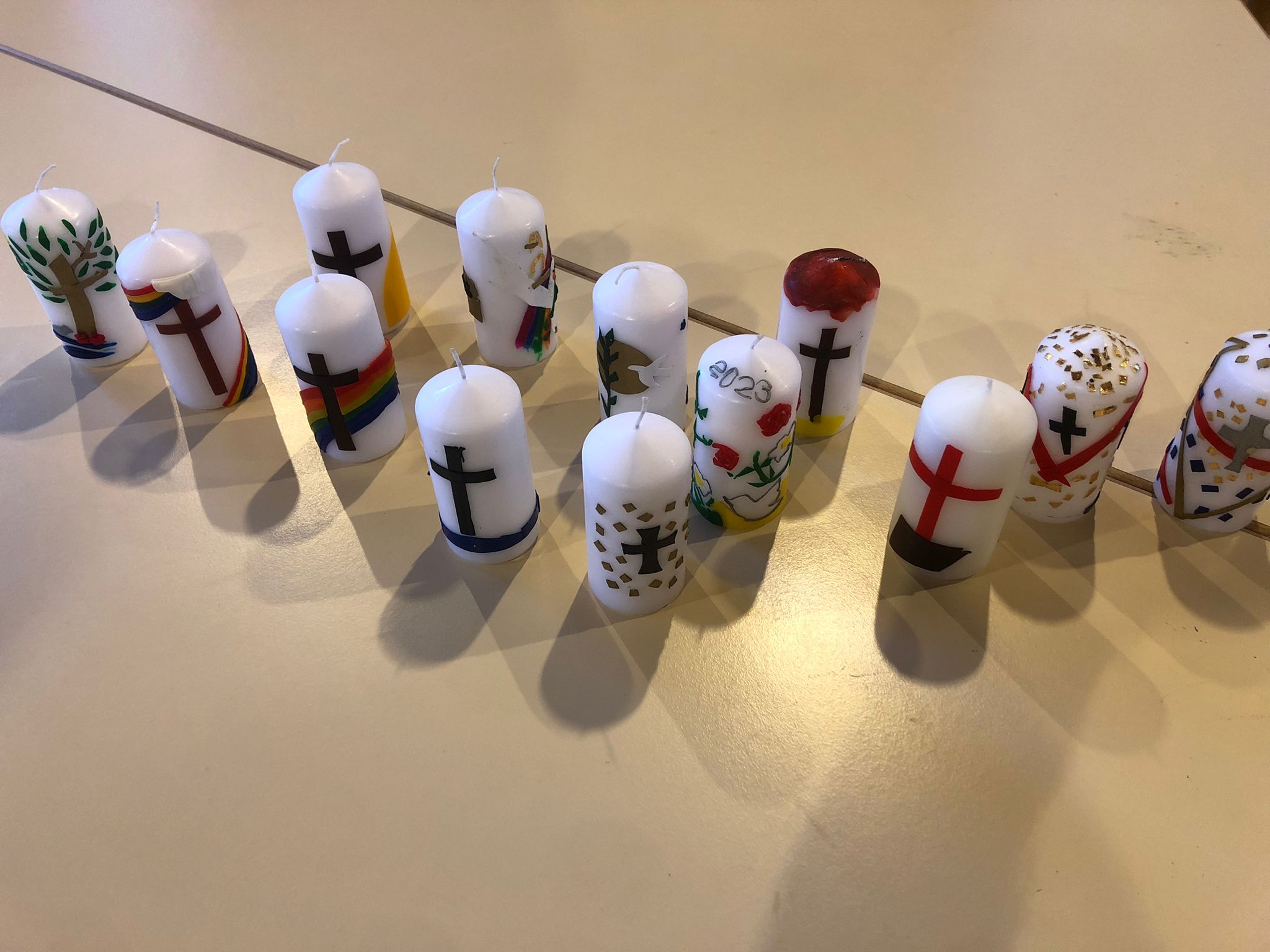 Zu Ostern wird in der Kirche jedes Jahr eine neue Kerze angezündet: Die Osterkerze. Die Osterkerze ist das ursprüngliche Symbol für den auferstandenen Christus. Die Kerze zeigt: Jesus ist das Licht der Welt. ER hat den Tod überwunden. Die Kerze ist ein Zeichen der Hoffnung. Man könnte sie auch Hoffnungskerze nennen. Hoffnung können wir alle gebrauchen. Am 21. März haben wir in Corvinus das erste Mal gemeinsam die neue Osterkerze gestaltet, die uns in wenigen Wochen in den Gottesdiensten begleiten wird. Außerdem gab es die Möglichkeit, auch eigene, ganz persönliche Osterkerzen zu basteln. Allen Beteiligten hat es viel Spaß gemacht. Es sind tolle Kunstwerke entstanden!