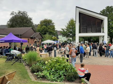 Gemeinsam mit hunderten Besucherinnen und Besuchern haben wir am 27. September in, vor und neben unserer Kirche das Herbstfest der Oststadt gefeiert. Zahlreiche Gruppen, Institutionen und Vereine waren mit vielfältigen Angeboten vertreten und sorgten so für ein tolles Programm für alle Generationen. So konnte beispielsweise eifrig gepuzzelt, Stockbrot gegrillt oder Bratwurst, Waffeln und Kuchen genossen werden. Musikalisch begleitet wurde das Fest durch einen Kinderchor der Oststadtschule und der Grundschule Luthe unter der Leitung von Albrecht Drude sowie die Sängerin MaRE, die für gute Stimmung gesorgt haben.