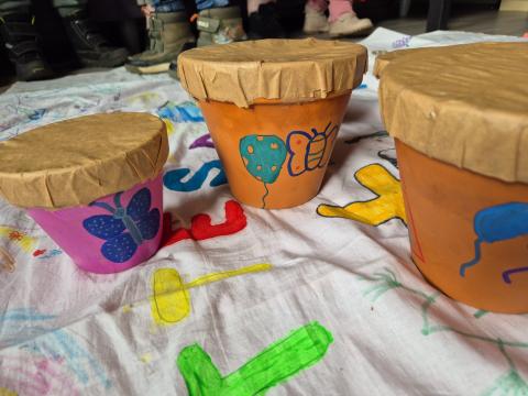 Am 1. März stand der Kindergottesdienst ganz im Zeichen des Weltgebetstages. Nach dem gewohnten Einstiegsritual schauten sich die Kinder daher verschiedene Bilder Nigerias an, das in diesem Jahr im Zentrum des Weltgebetstages steht. Und so erfuhren sie nicht nur, dass in Nigeria mit etwa 230 Millionen Einwohnerinnen und Einwohnern etwa dreimal so viele Menschen leben wie in Deutschland, sondern auch, dass man dort Tieren wie Krokodilen, Elefanten oder Giraffen auch außerhalb von Zoos begegnen kann. Zudem wurden im Rahmen der Kreativphase Trommeln aus Blumentöpfen, Backpapier und Kleister gestaltet und gefertigt.Der KiGo endete mit einem gemeinsamen Segenslied und dem Vater Unser.