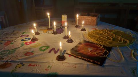 Der diesjährige Kunterbunte Kindermorgen in Corvinus stand ganz im Zeichen des Lichts. Angefangen mit dem Entzünden von Kerzen sowie der Gestaltung einer Gebetssonne, ging es in einer spannenden Mit-Mach Geschichte um einen kleinen Bären, der nachts durch den Wald geht, sich aber dank des Lichts seiner Laterne nicht fürchtet. Anschließend wurde darüber gesprochen, dass auch Gott ein solches Licht für uns ist, das uns stärkt, Kraft gibt und beschützt, auch wenn wir Angst haben oder es uns schlecht geht. Nach einem Bewegungsspiel stand ein Quiz auf dem Programm, bei dem die Kinder mit Hilfe von kleinen UV-Lichtern die richtigen Antworten auf Zetteln im Gemeindehaus finden mussten. Abegrundet wurde der Vormittag durch das Basteln kleiner Kerzen aus Pappe, das Anrühren von Leuchtknete sowie einem kleinen Gemüsebuffet. Auch gab es zum Schluss noch leckere Crepes und ein gemeinsames Gebet.
