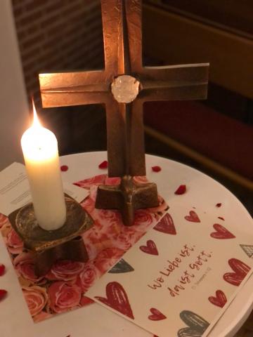 Gestern Abend stand die Kneipenkirche ganz im Zeichen der Liebe. So gab es nicht nur entsprechende Dekoration, sondern auch die Möglichkeit der Paarsegnung. Abgerundet wurde der schöne Abend durch tolle Musik von "Songs and Colors" sowie leckere kulinarische Angebote.