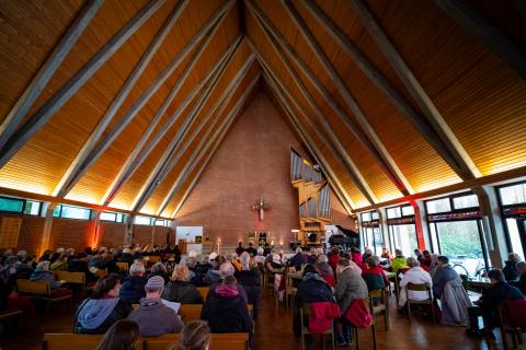 Die zahlreich erschienenen Besucherinnen und Besucher erlebten einen Gottesdienst, der Raum für Nachdenklichkeit bot und Mut machte, sich den Herausforderungen der Zeit mit Vertrauen zu stellen. Viele von ihnen blieben auch nach Ende des Gottesdienst, um bei einem gemeinsamen Kaffee über das Gehörte zu sprechen.