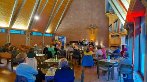 Nach einer kurzen Vorstellung der Teilnehmenden und einer ersten Positonierung entwickelte sich schnell eine sehr vielfältige Debatte über die Entwicklung und den Nutzen von Kirche. Diskutiert wurde dabei nicht nur über den Einfluss der sozialen Medien auf Kinder- und Jugendliche, die Bedeutung von Gemeinschafterfahrungen im Raum Kirche oder eine vermeintliche Abweichung der Kirche von ihrer theologischen Kernbotschaft, sondern auch über mögliche Aufgaben für die Zukunft des kirchlichen Lebens. Auch einige Besucherinnen und Besucher beteiligten sich lebhaft an der Debatte, indem sie Fragen an die Diskutanten stellten oder Denkanstöße äußerten.