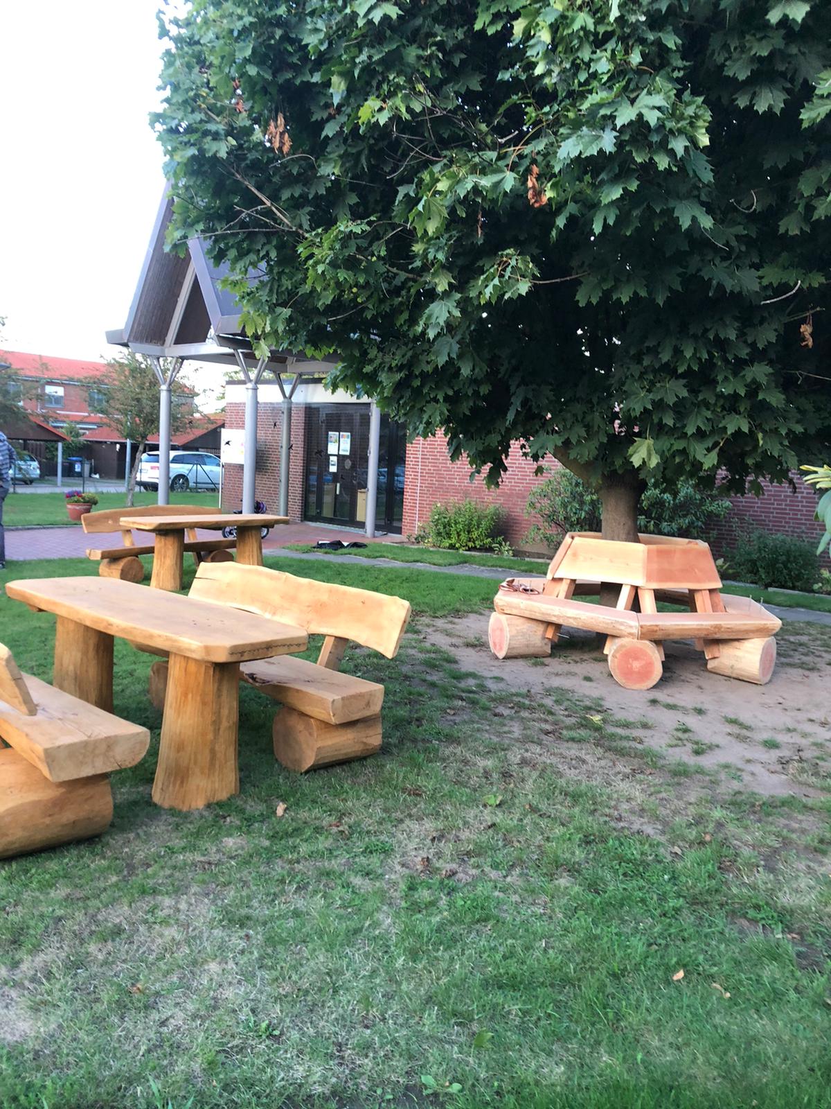 Ein großes Dankeschön geht an unseren Kirchenvorsteher Lars Krull, der die ziemlich schweren Möbel abgeholt und gemeinsam mit weiteren Ehrenamtlichen an ihrem Platz aufgestellt hat. Die Außenfläche ist von nun an um eine Attraktion reicher!