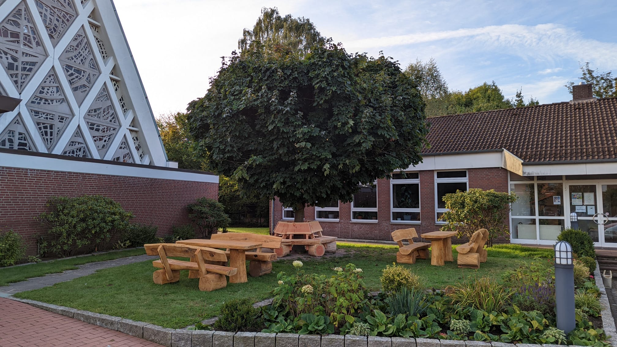 • Neue Außenmöbel vor der Kirche
