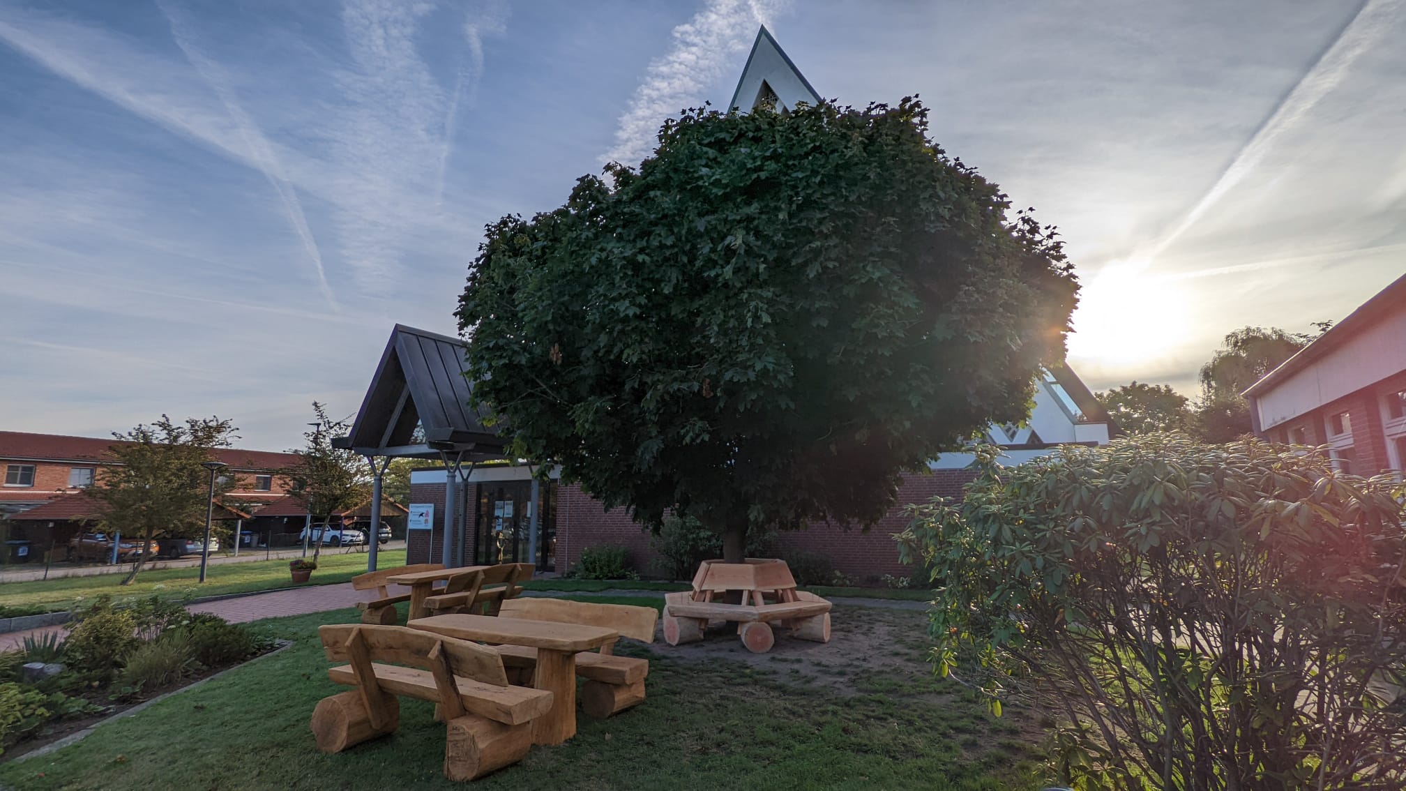 Dem ein oder anderen mag es schon aufgefallen sein - seit kurzem wird der Platz vor unserer Kirche von neuen Sitzbänken geschmückt. Angeschafft wurden die Außenmöbel im Rahmen der Umgestaltung der Außenflächen um die Kirche, die durch zahlreiche Spenden im Rahmen des freiwilligen Kirchgeldes des letzten Jahres ermöglicht wurde. Nun laden zwei Sitzeinheiten mit jeweils zwei Bänken und einem Tisch sowie eine Baumbank auf der Fläche vor der Kirche zum Verweilen ein. Eingeweiht wurden die Möbel bereits im Rahmen unserer großen Jubiläumsfeier.