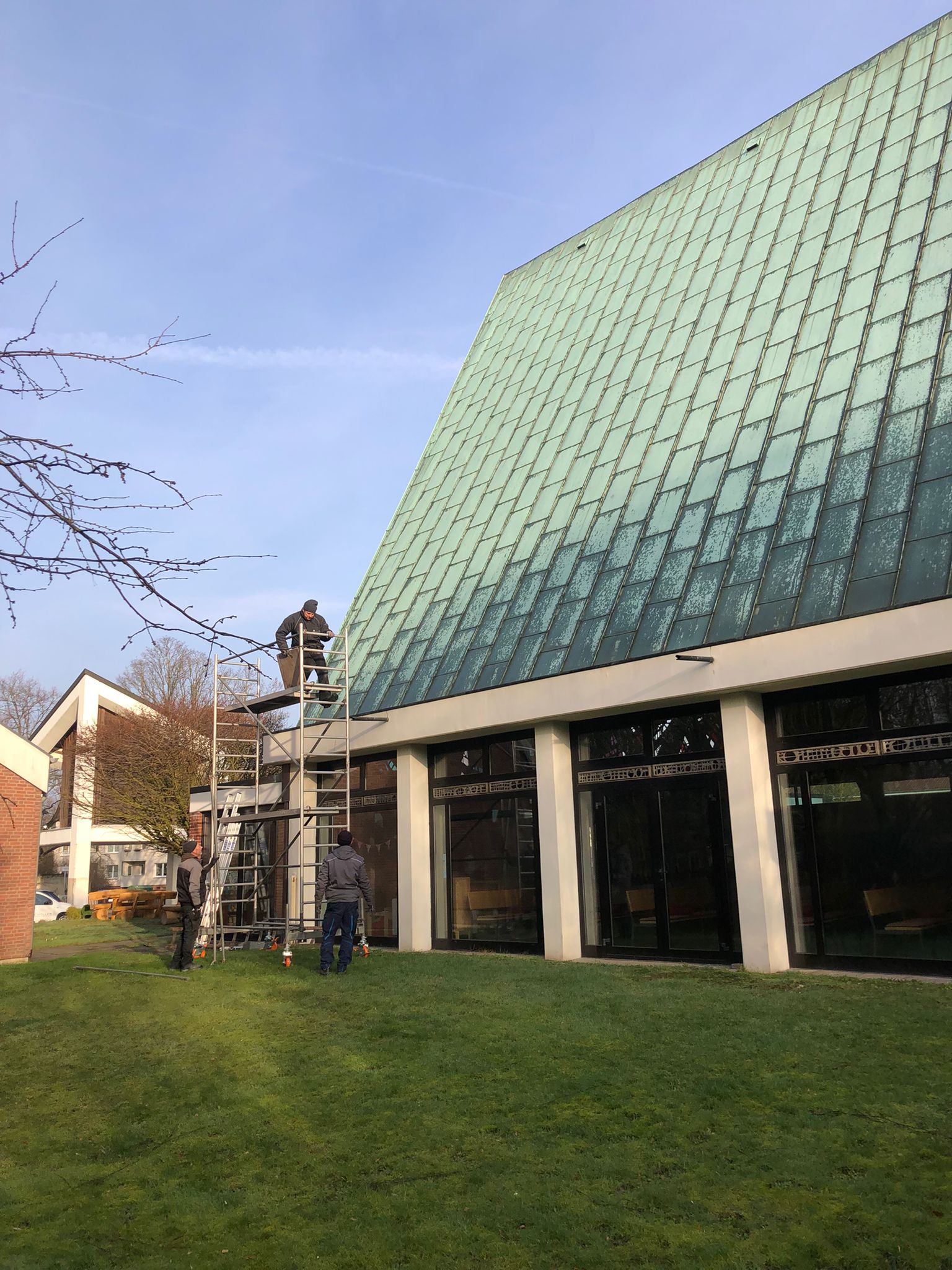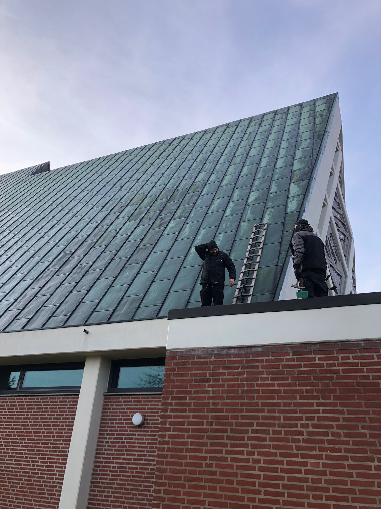 Am letzten Mittwoch waren Experten der Firma Bagge in Corvinus zu Gast und haben sich intensiv mit dem Zustand des Kirchdaches beschäftigt. Dabei wurde festgestellt, dass ein Großteil der Kupferziegel des Daches, insbesondere auf der Südseite, locker und in keinem guten Zustand sind. Als gute Nachricht konnte jedoch festgehalten werden, dass das Dach zumindest dennoch dicht ist.